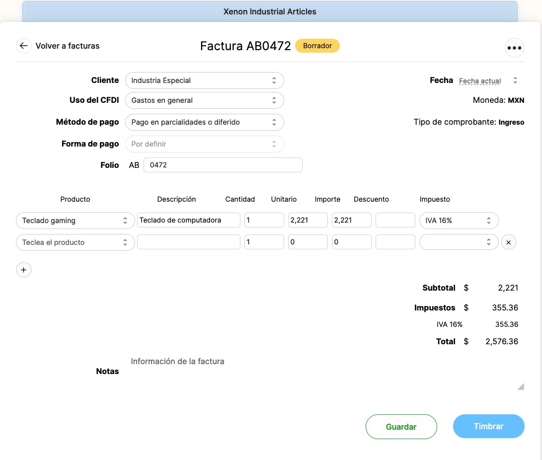 Facturación CFDI 4.0 de ingreso, incluyendo facturas público en general. También puedes relacionar una factura a otra, crear borradores antes de convertirlos en facturas y enviarlos como presupuestos.