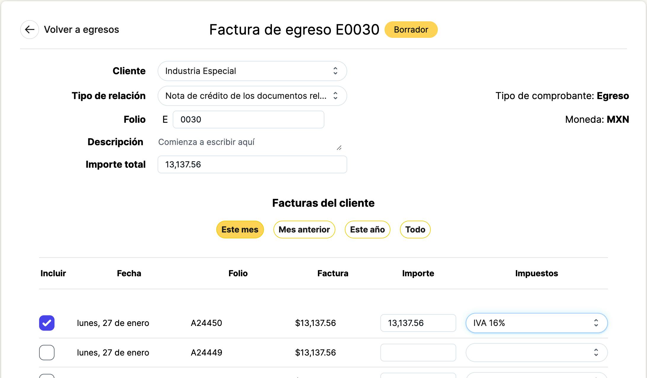 Timbra CFDI de egresos, también llamados notas de crédito o débito.