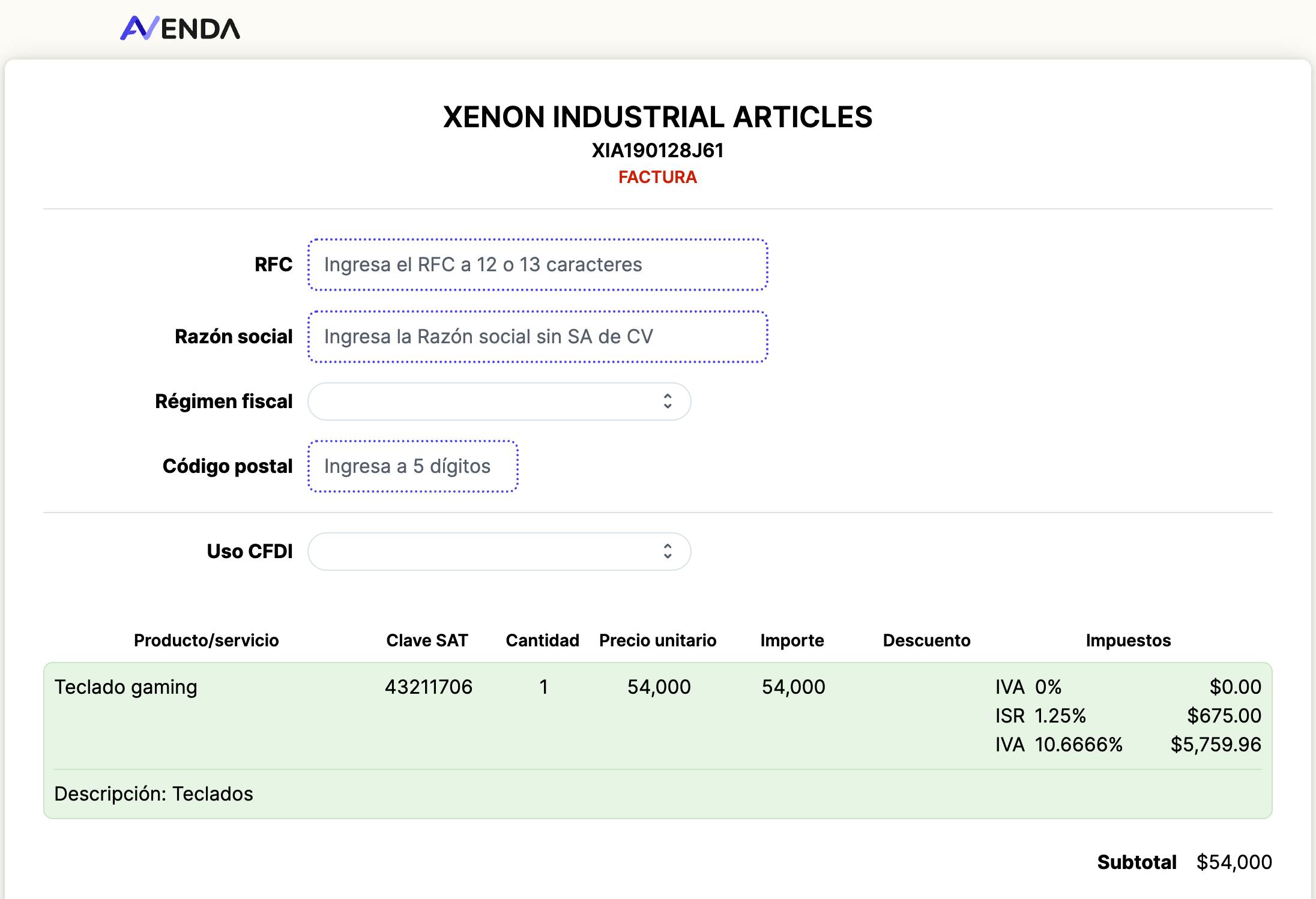Integra su propio sistema con Avenda y factura a través de la API. Contáctanos para más detalles. Con la API puedes conectar tu tienda en línea, sistema contable o de adminstración.