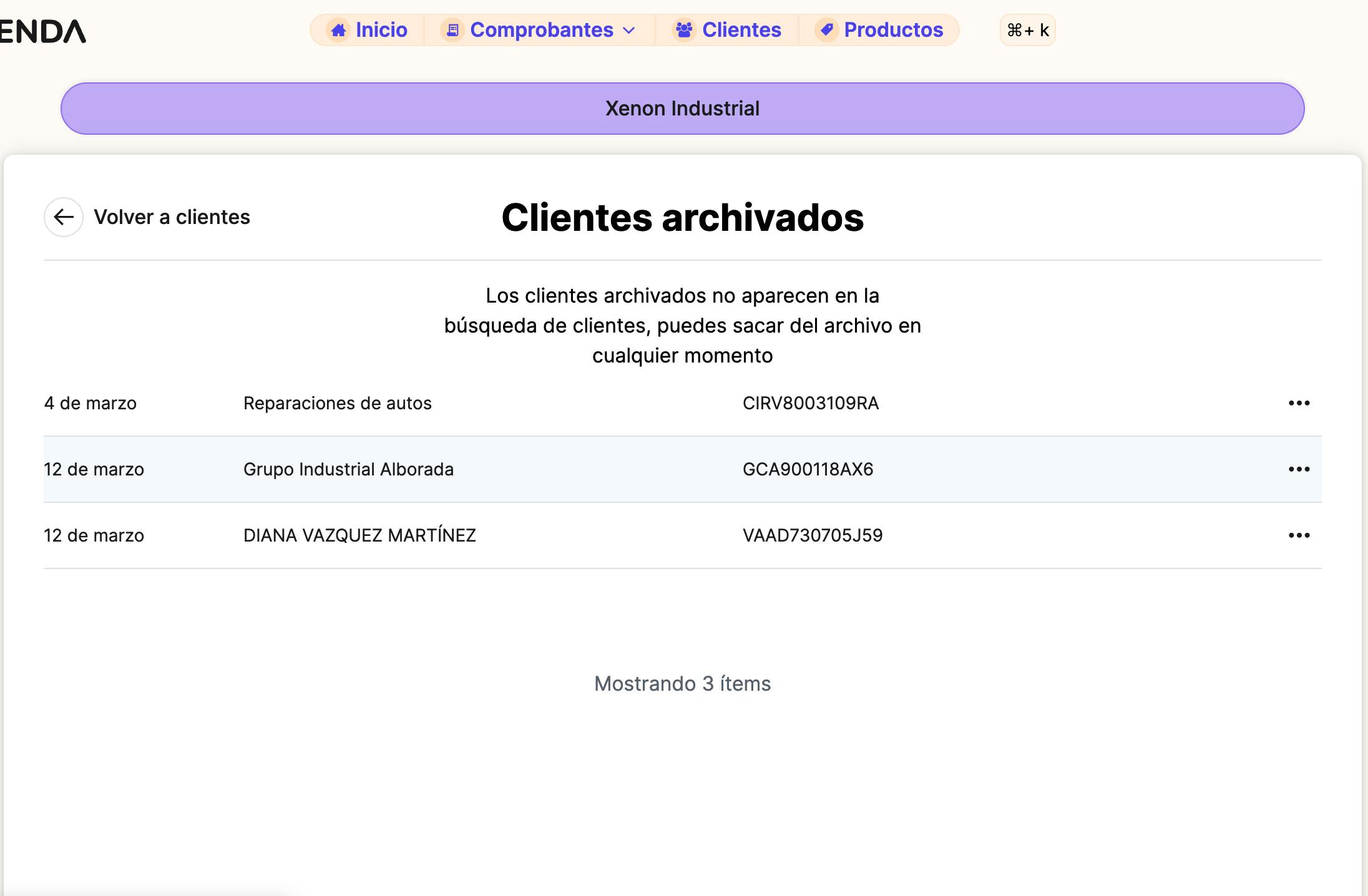 Ahora puedes archivar clientes a quienes ya no vayas a facturar, dejarán de aparecer en la búsqueda de clientes al crear un comprobante.