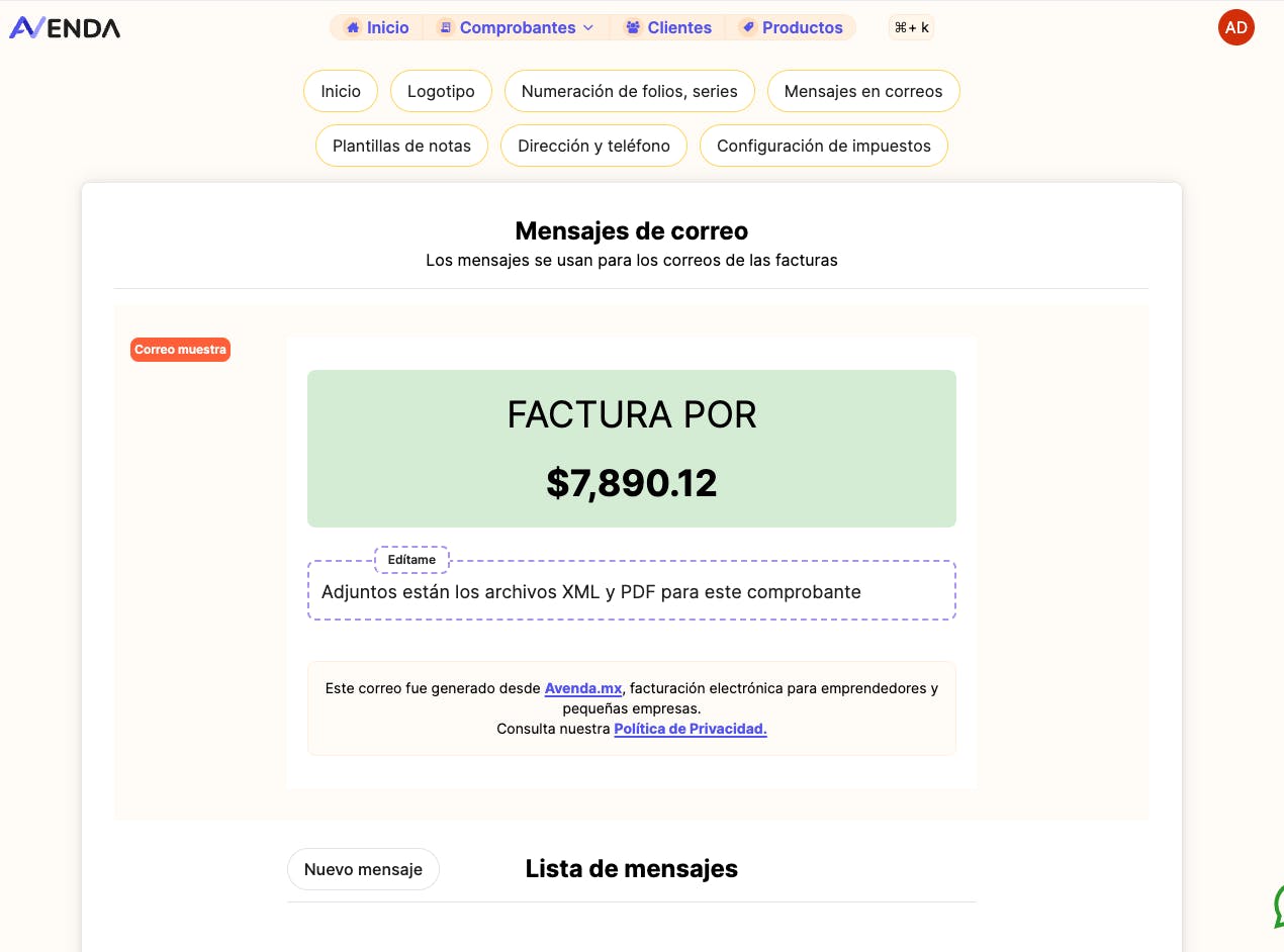 Agrega tantos correos como necesites al momento de enviar tu factura por email