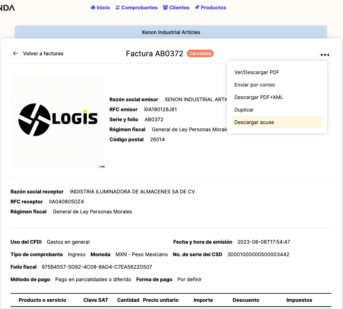 Comparte el enlace externo a una factura con tus clientes sin que tengan una cuenta en Avenda. Podrán también descargar el ZIP (PDF+XML).