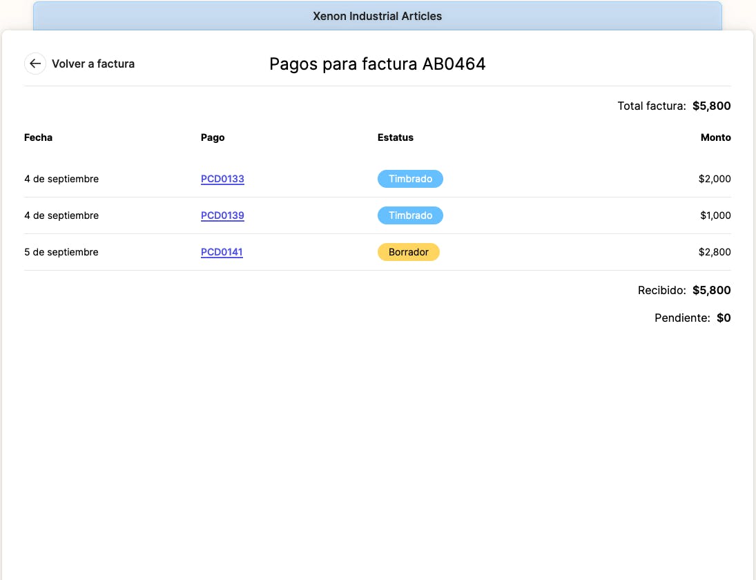 Ve los pagos que ha recibido una factura y monto total de todos los pagos